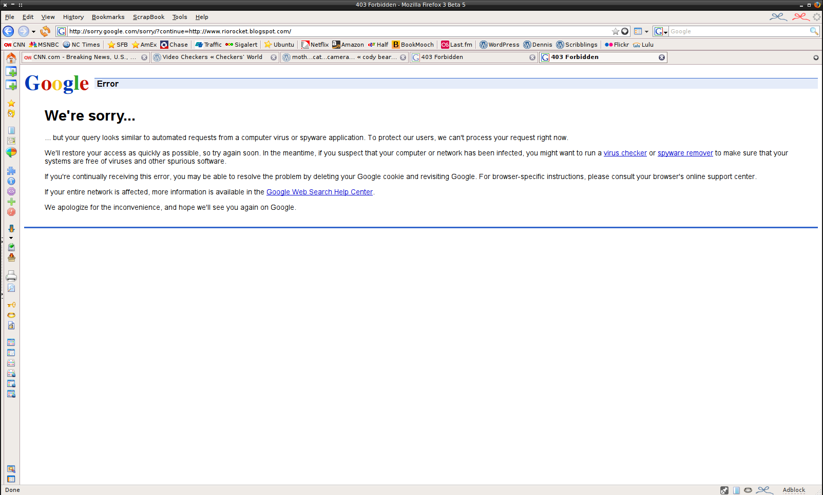 I have a suggestion for Google … just block everyone who’s running any version of Windows earlier than Vista, and let the rest of us visit you in peace.