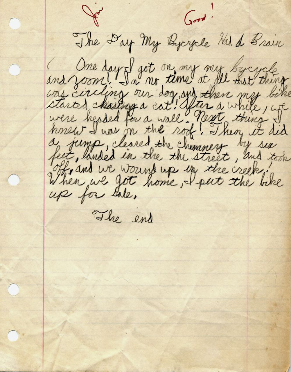 I LOVE that the teacher just wrote ‘Jim’ at the top: he knew exactly which kid wrote the story! You are pretty memorable 🙂 !