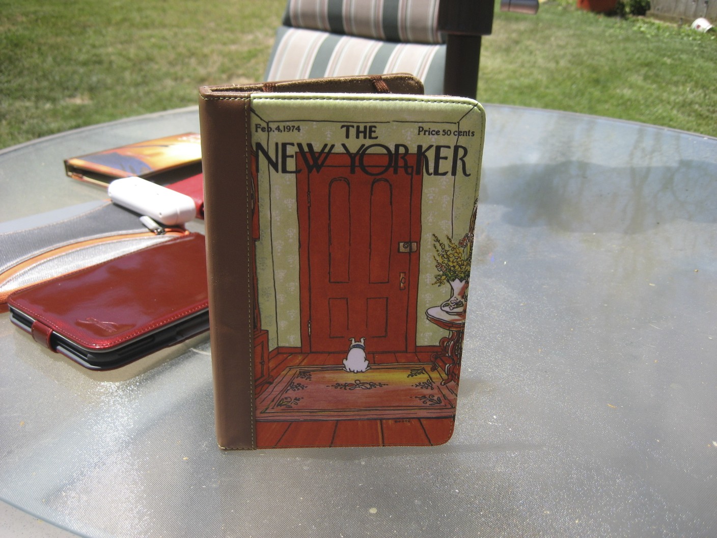 So after using my orange Kindle case for a while, I happened to notice that M-Edge made Kindle cases printed with covers from The New Yorker. The New Yorker is, of course, my favorite magazine of all time (I practically have a lifetime subscription), and I love dogs, and (as the Necromancer astutely noted) orange is my favorite color. So this would be the perfect Kindle case for me, right?