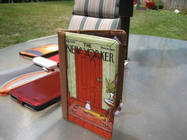 So after using my orange Kindle case for a while, I happened to notice that M-Edge made Kindle cases printed with covers from The New Yorker. The New Yorker is, of course, my favorite magazine of all time (I practically have a lifetime subscription), and I love dogs, and (as the Necromancer astutely noted) orange is my favorite color. So this would be the perfect Kindle case for me, right?