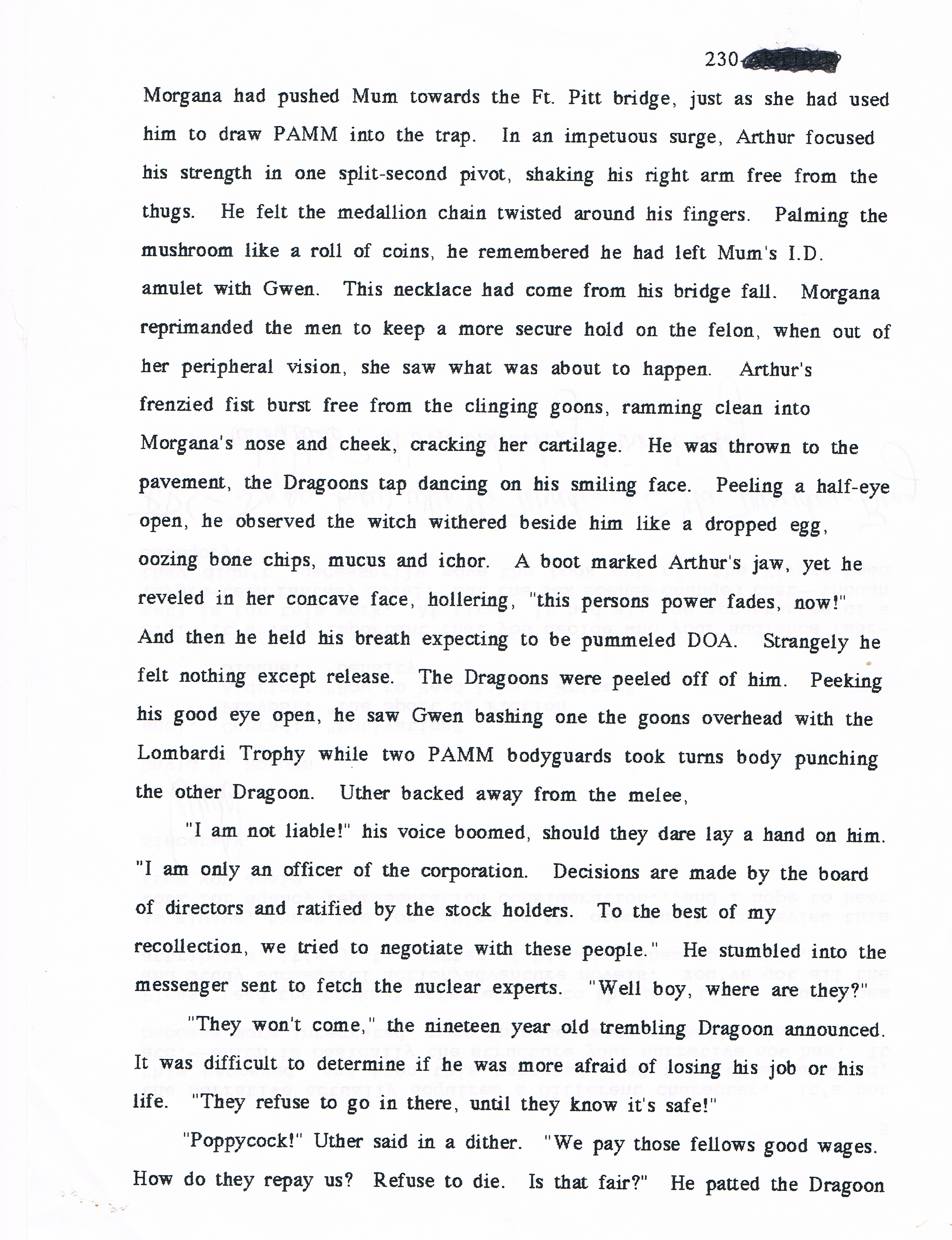 This would appear to be Camelot ported to a corporate setting. Uther soundsexactly the way one would expect a corporate toady to sound when confronted with a bone chip, mucus, and ichor-oozing concave-faced witch. Or an angry group of stockholders. At least they pay good wages, though. |