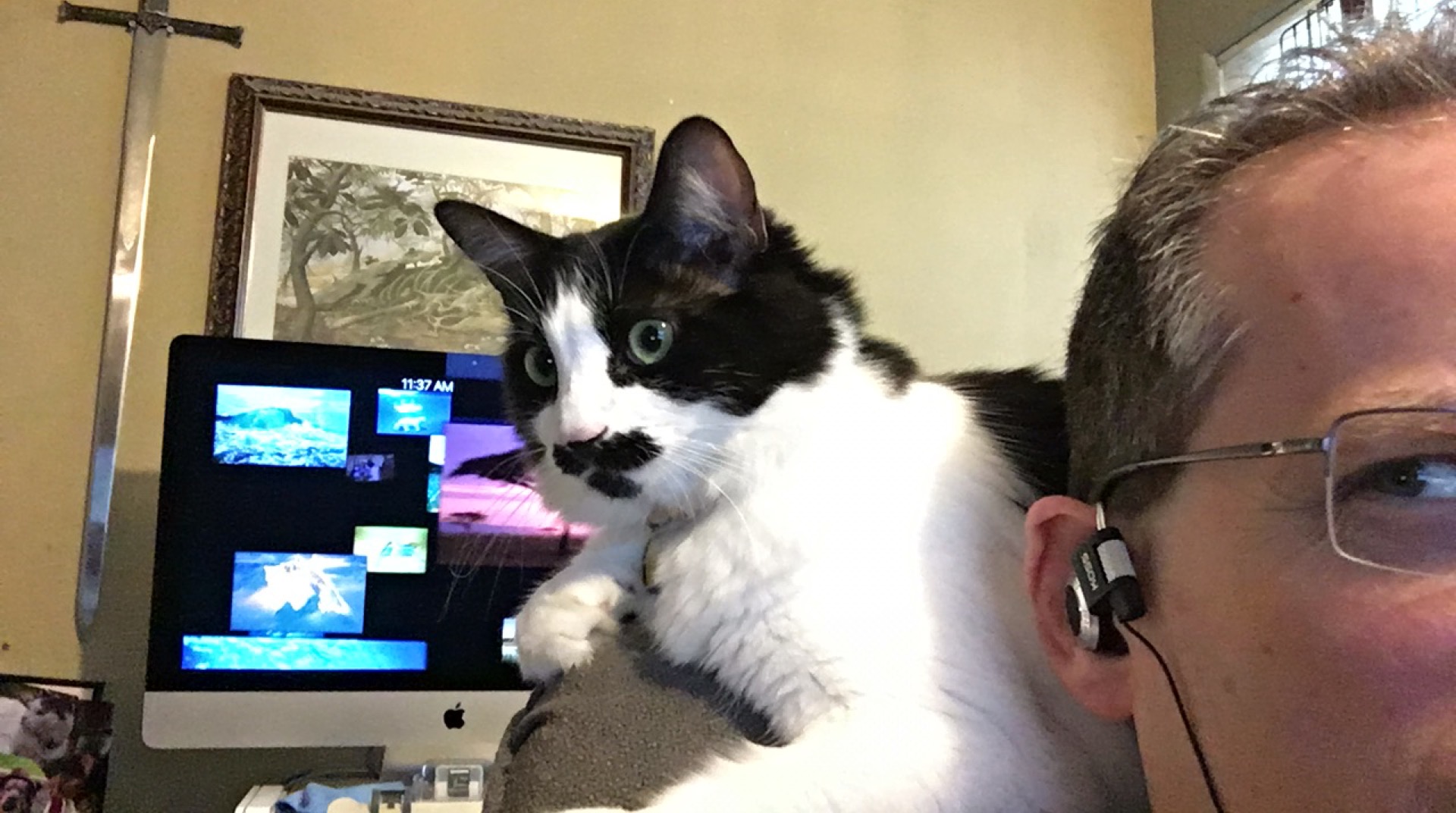 Don’t worry, Charlee, you and Chaplin are in no danger of freezing here in Southern California. And meanwhile, under the cat’s close supervision, editing continues on Father’s Books. I’m back towards the beginning on this pass; nobody important has gotten killed yet. And in this little exchange, one of the characters, six-year-old Janice, is talking to her mother about her imaginary friend Candy.