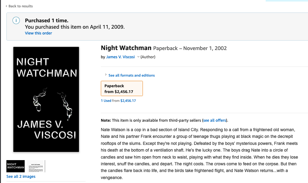 What the what??? $2,456.17 for the paperback edition of Night Watchman? Where did they come up with that price? And where’s the Kindle edition?