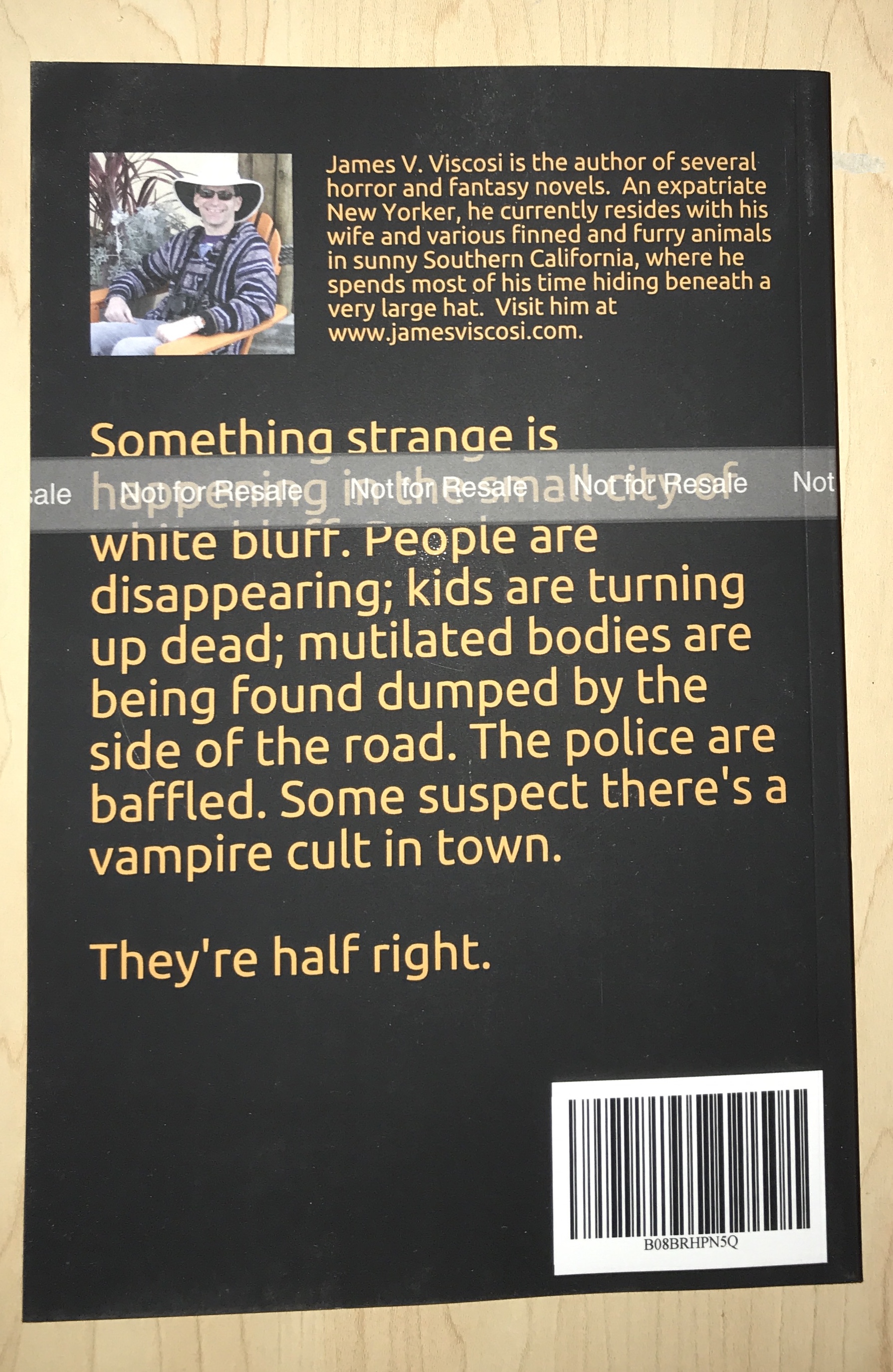 These are actually the second set of proofs I ordered from KDP. After reviewing the first set, in addition to a number of interior layout changes, which are kind of technical and which I won’t really get into (they involve things like recto pages, verso pages, small caps, removing the leading tab of first pages, etc.), I also changed the style of the text on the back covers, getting rid of the upper/lower-case kind of computer-looking font and replacing it with a Copperplate-style small caps font. Here’s an example of a previous back cover:
