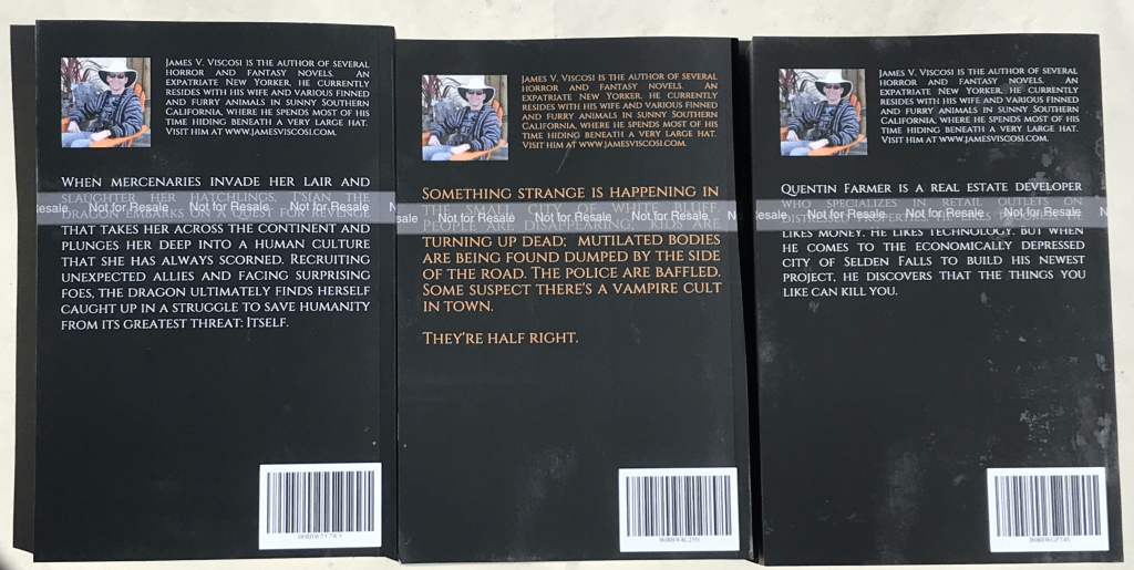 So a few weeks ago, I mentioned that, due to the totally botched rollout of their “upgraded” web site, Lulu.com had managed to hose the three books I’ve had on sale through them since, oh, 2008 or so, that I had contacted their support department, and that if I didn’t hear from them, I was likely to retire the books from Lulu.com and move them to KDP and IngramSpark. Well, the astute reader will probably not be shocked to learn that I never heard from Lulu.com, that I retired the books, and that I moved them to KDP. (IngramSpark will be next.) This week, I got the first set of proofs from KDP of the new and improved—as in, likely to actually be available soon—versions of Dragon Stones, Long Before Dawn, and A Flock of Crow is Called a Murder.