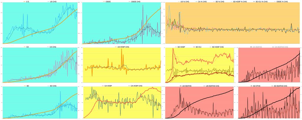 While the COVID-19 pandemic has been raging on, we—like much of California—have been staying home pretty much all the time, as San Diego County’s numbers were not moving in a good direction for some weeks. Check it out: I’ve been keeping charts.
