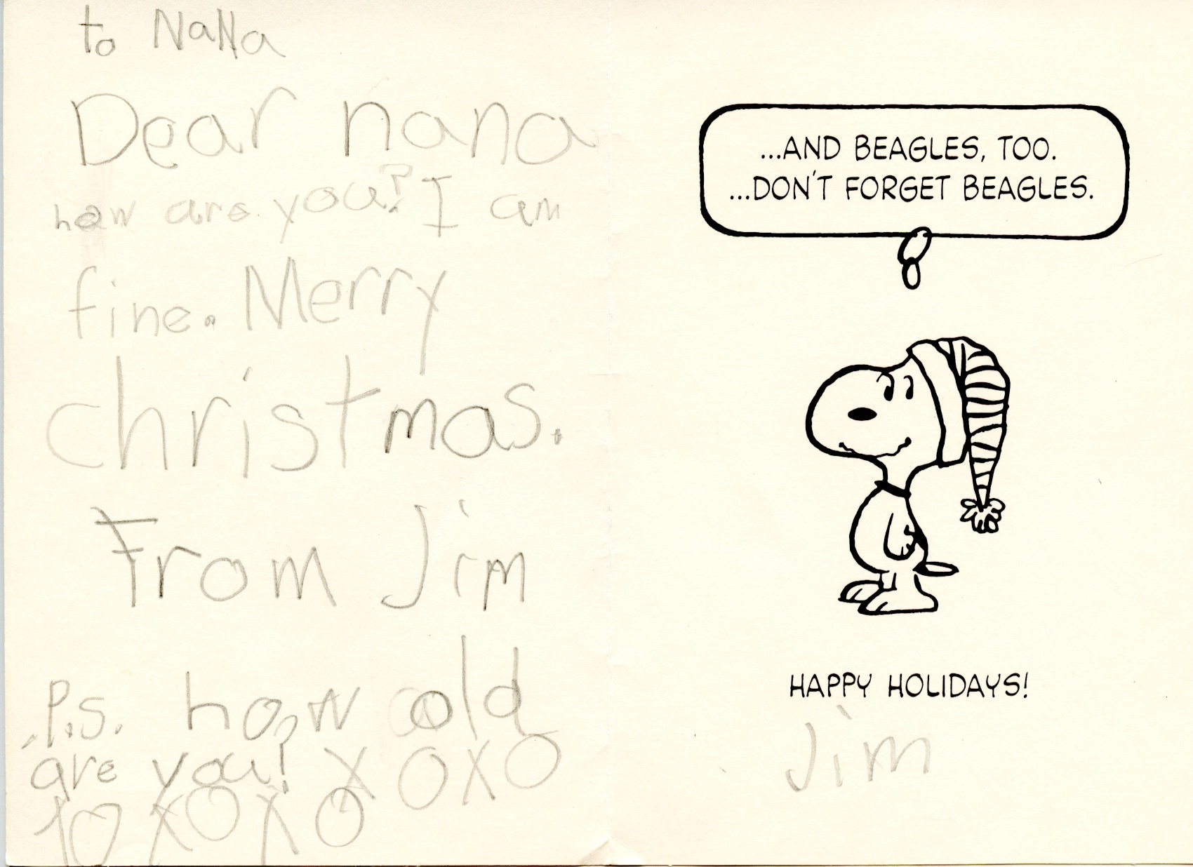 So today I reached into the pile of old papers and whatnot that my folks sent out some time ago, and this is what I came up with. It may be a little bit early to put up a Christmas card, but hey, if Lowes can have their decorations out in September, I can post this. So there. Besides, it’s never a bad time for peace on earth, right?