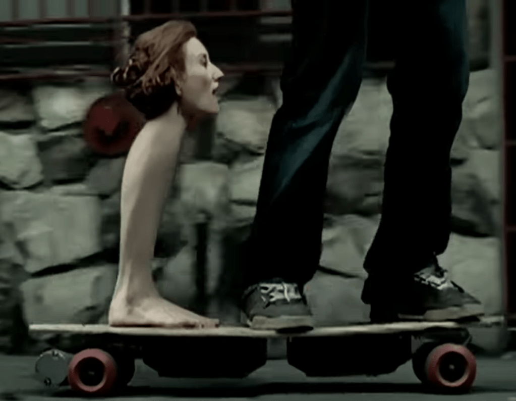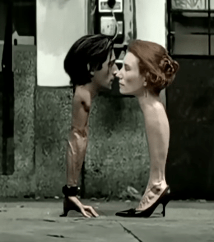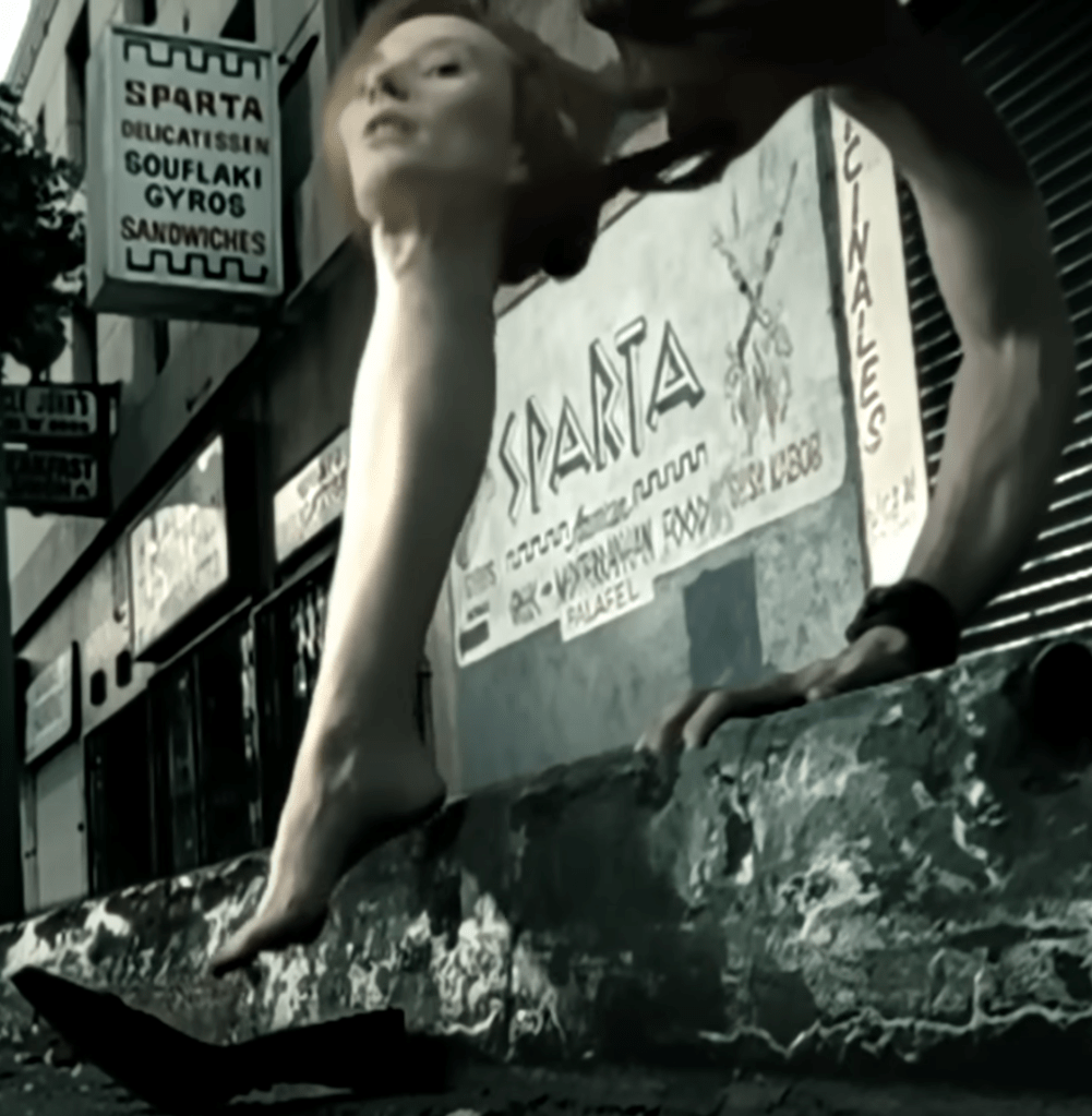 In case you decided not to watch it, the premise of the video is that Tori Amos’s head is on top of a leg and Adrien Brody’s head is on top of an arm, and together they hop around some city sidewalk. No one bats an eye at this, so I figure it must be New York City.