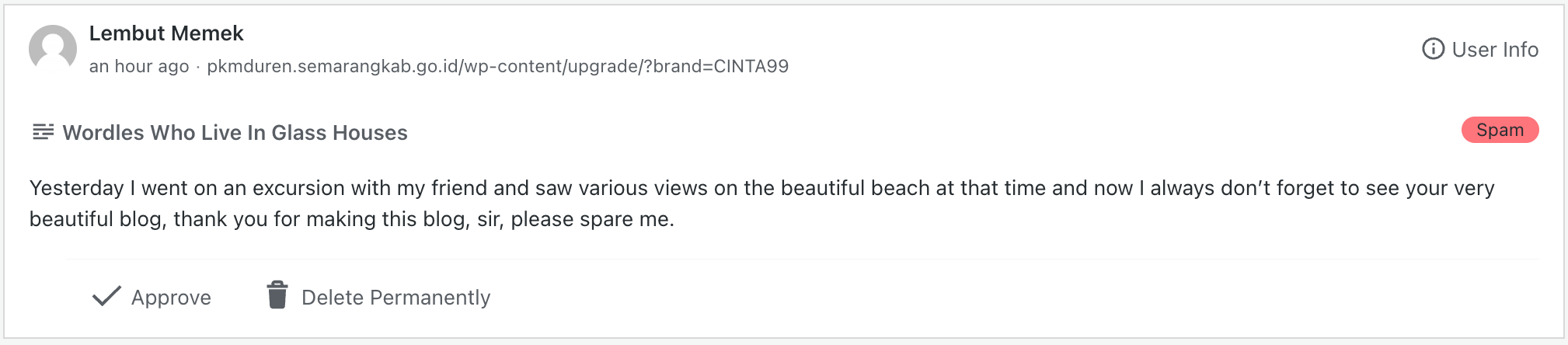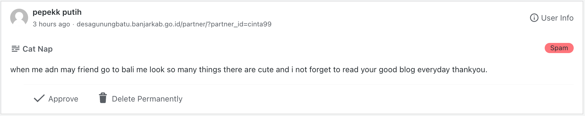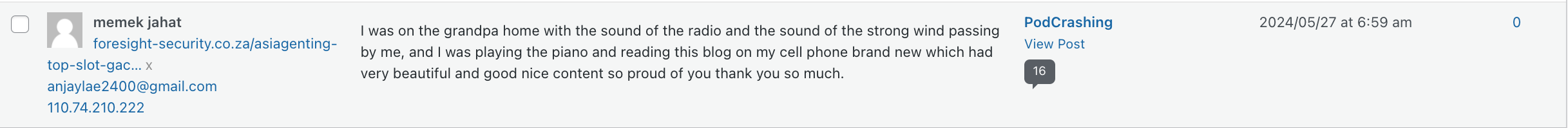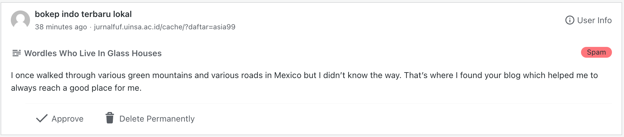 Fortunately, Memek had escaped the city in his very next spam comment.