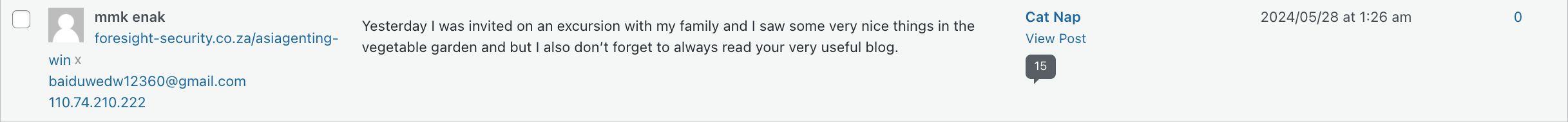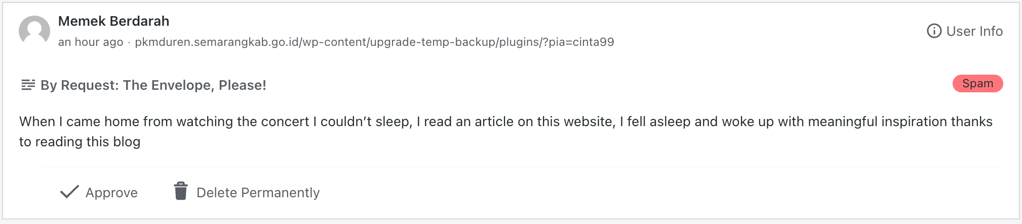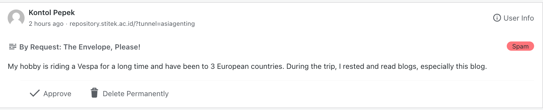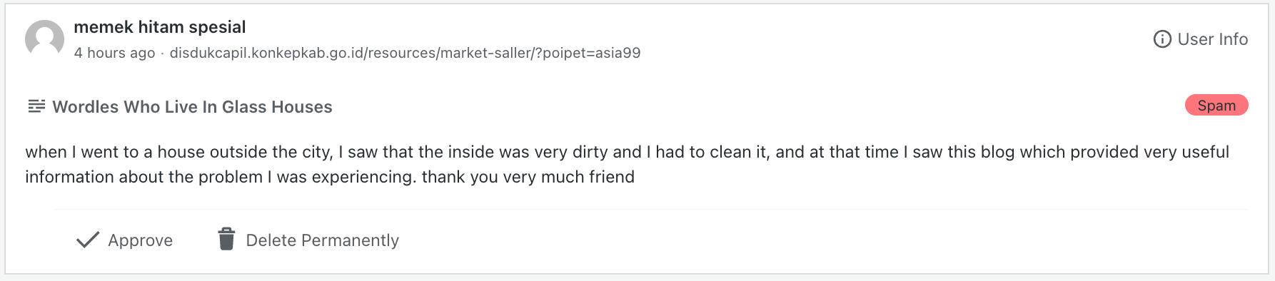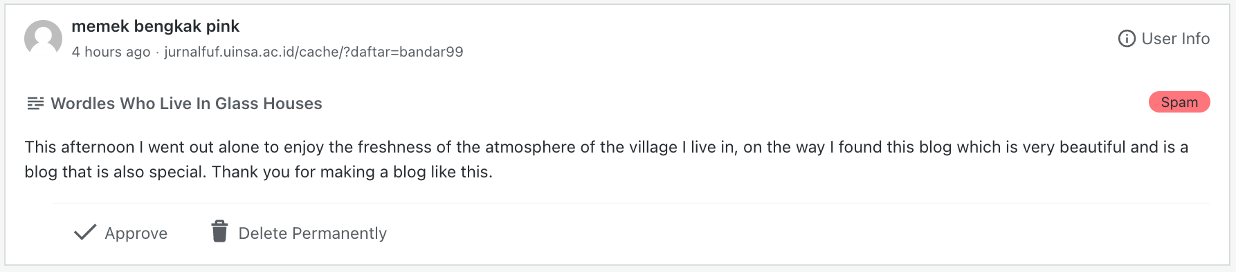 Fortunately, Memek had escaped the city in his very next spam comment.