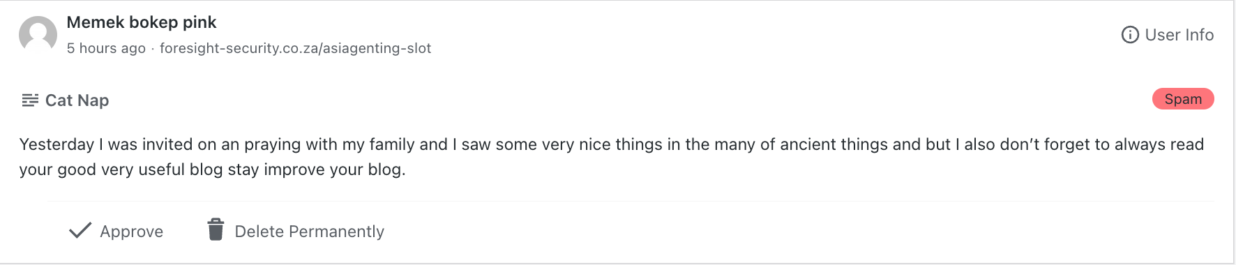 2. Few years back on the blog that’s deleted, I used to get around 100 comments in day in spam. And it was difficult to manage to see which are normal and spam when except 1 or 2 comment, every comment was spam.