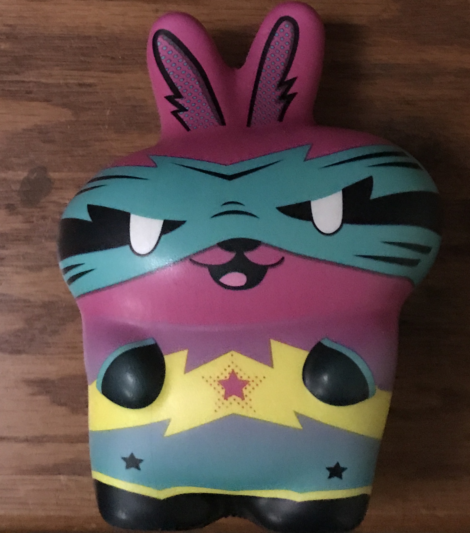 Needless to say, my wife did not bring me Charlee, but she did return with a bag of stuff she had gotten from Barnes & Noble, including a stress squeeze ball (I had plenty of stress, but not a lot of strength for squeezing), a fuzzy llama (which Chaplin later tried to abduct), a dinosaur made out of those currently ubiquitous color-changing sequins, a colorful, quasi-Japanese rabbit, and a fuzzy gnome that I dubbed “Substitute Charlee”: