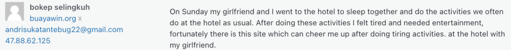 “On Sunday my girlfriend and I went to the hotel to sleep together and do the activities we often do at the hotel as usual. After doing these activities I felt tired and needed entertainment, fortunately there is this site which can cheer me up after doing tiring activities at the hotel with my girlfriend.”